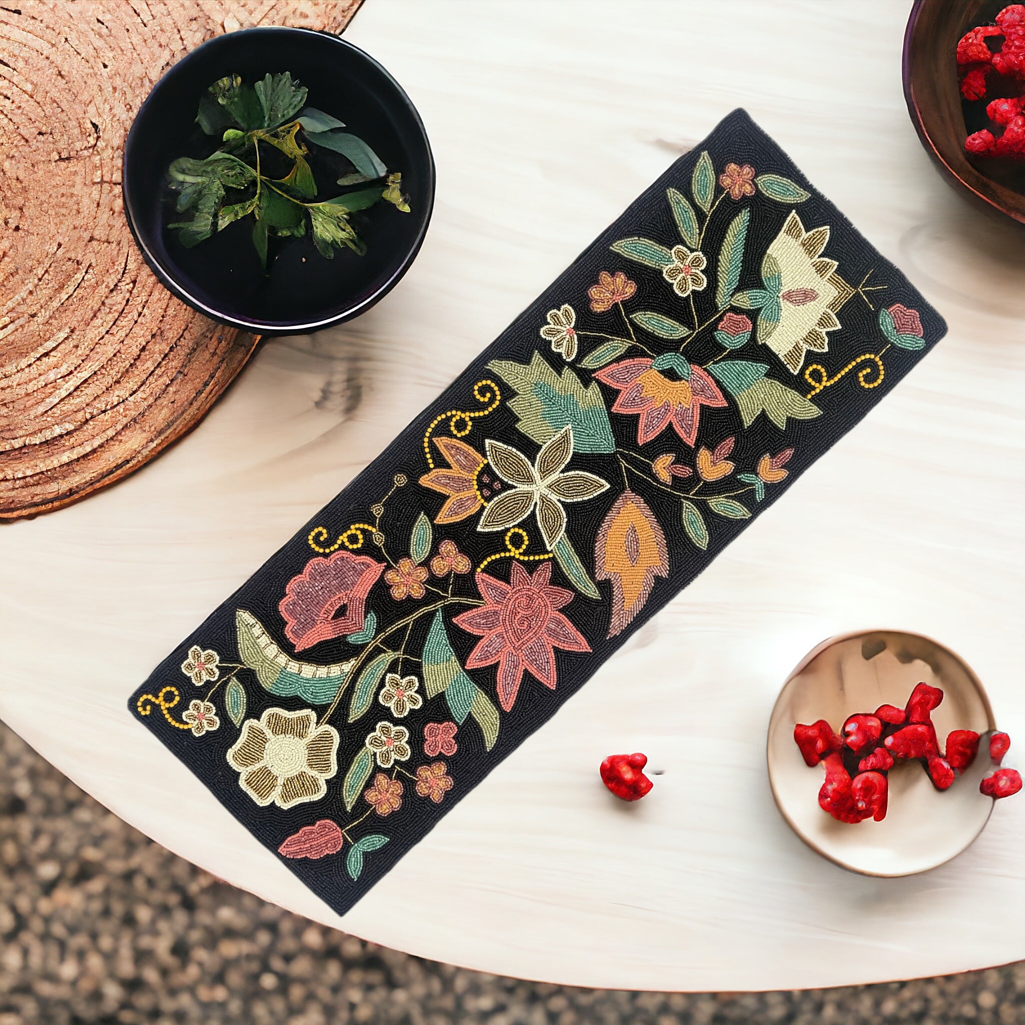 Created from thousands of miniature glass beads to resemble a colorful pineapple motif. Everyone’s favorite tropical fruit receives an eclectic update with the multicolored crown, while the sparkling gold-tone body also catches attention.