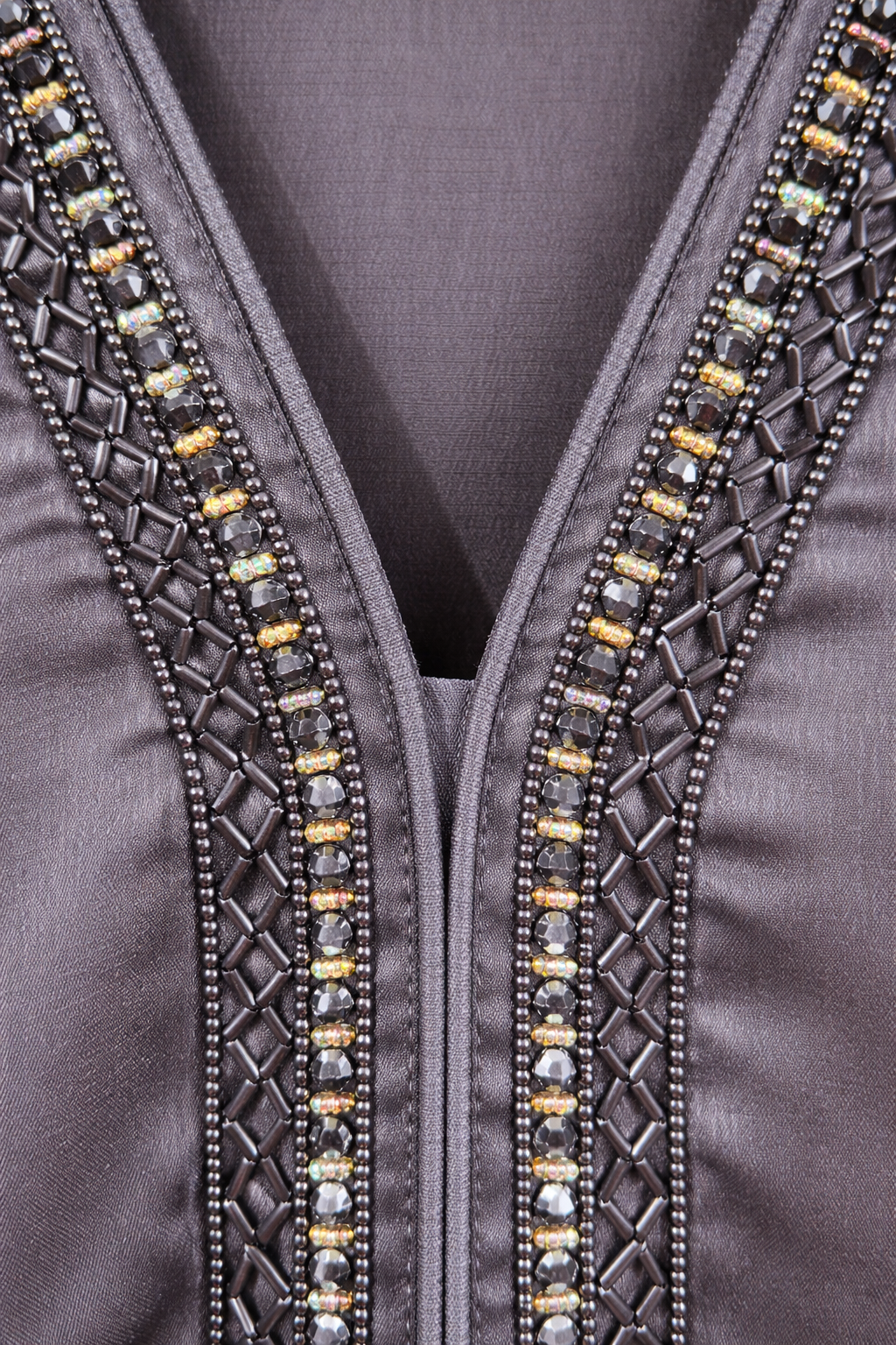 Step into elegance with this exclusive stone work abaya, designed to make a refined statement. Adorned with carefully placed stone embellishments, it adds a graceful shimmer while maintaining a sophisticated and modest silhouette.